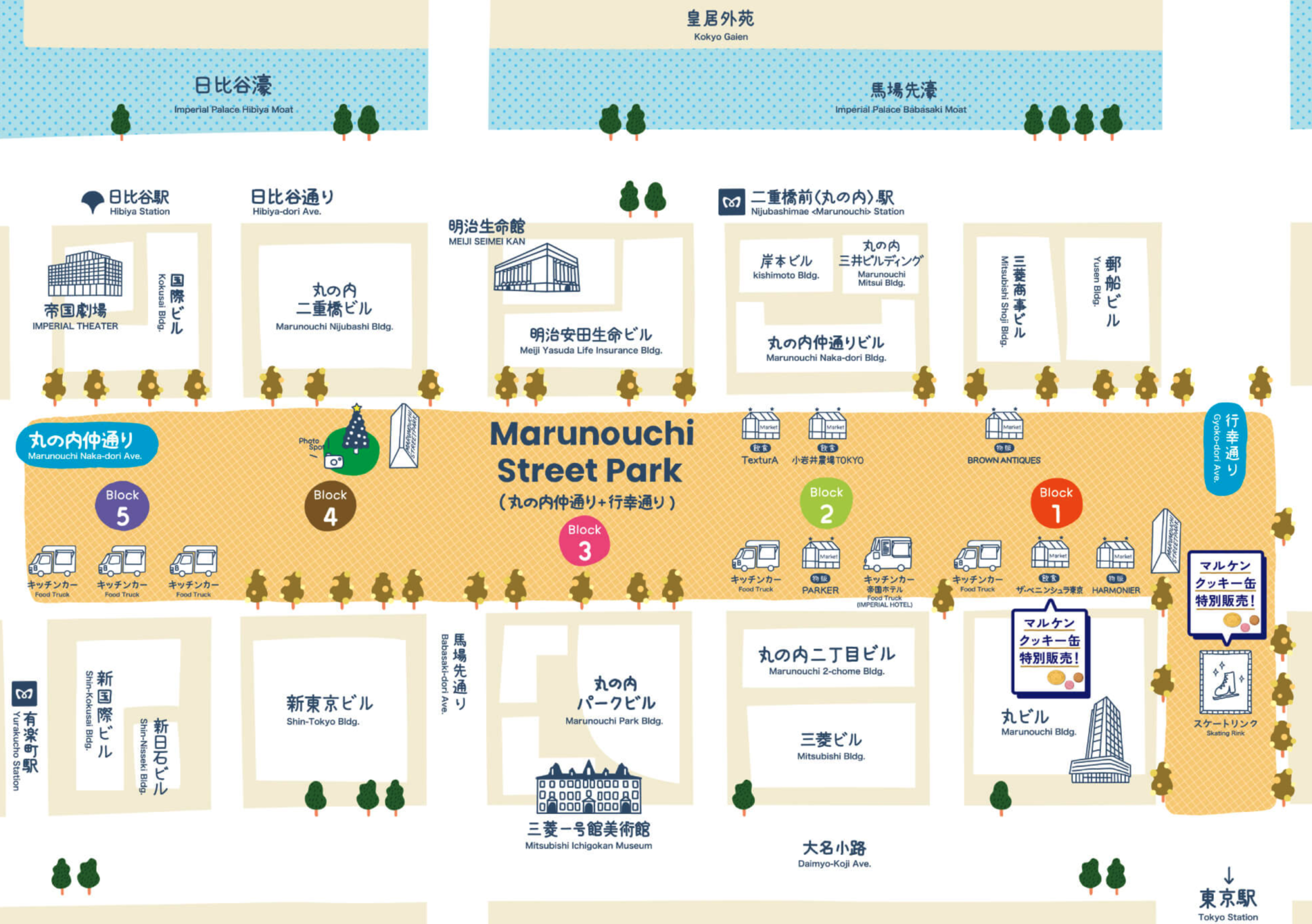 日比谷駅前の晴海通り〜東京駅(丸の内駅舎)前の行幸通りまでの「丸の内仲通り」がメイン会場💘